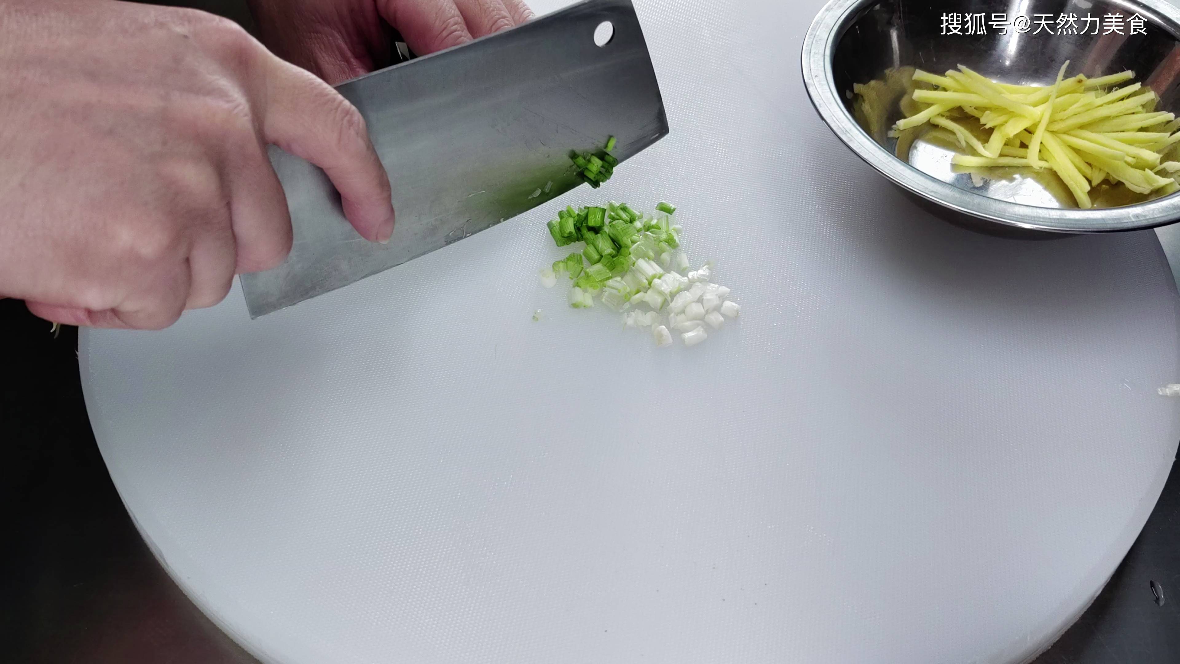3、在浸泡排骨的这个空档,我们可以准备一些腌制的配料,生姜去皮后先切成片再切成丝。可能很多同学不知道这个姜皮在什么情况下要去掉,什么情况下要保留。这个都是要根据自己的实际情况来决定的,因为姜皮是凉性的,所以保留姜皮会带有一定的凉性,而去掉姜皮则是热性的。所以姜皮去与不去,则根据自己的实际情况来决定。