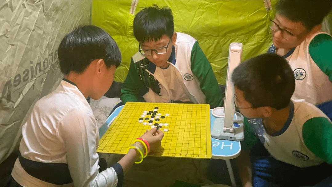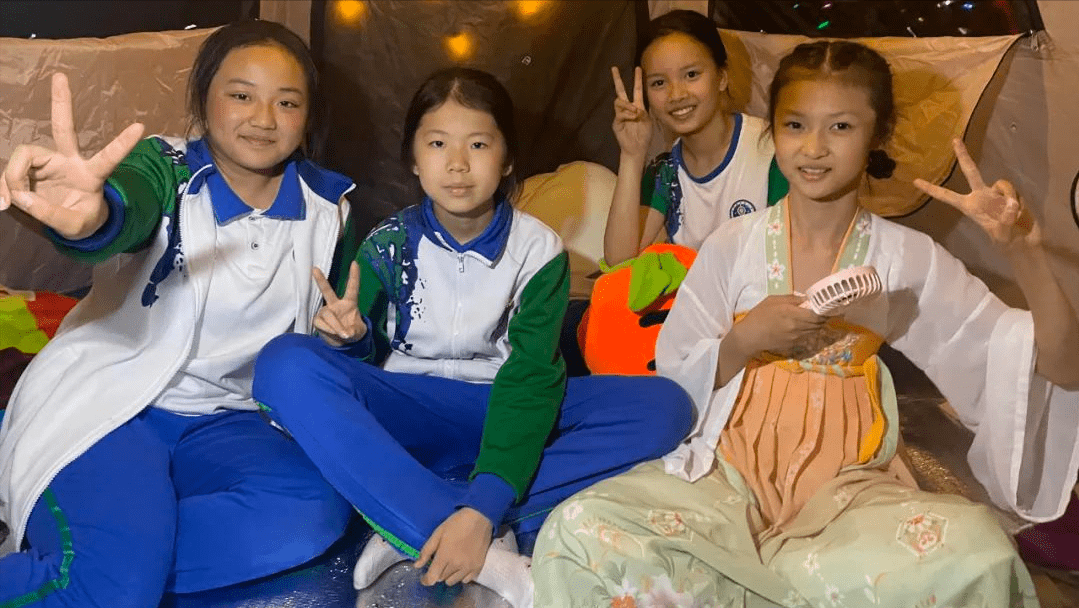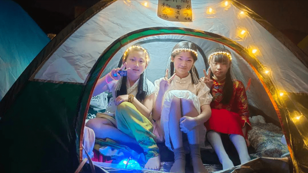 夜幕渐浓,孩子们钻进帐篷,夜枕大地,轻声细语,畅聊未来。