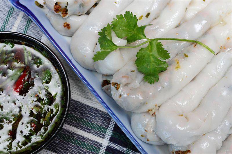 河口的卷筒绝对是红河人夏日解暑的常见美食!薄薄的粉皮里包进酸菜肉末、芹菜肉末、葱花肉末、香菇肉末等各种炒好的馅料,放在秘制的酸辣蘸料里滚一滚,送入口中,馅料里浸满了酸辣适中的蘸料,超满足!