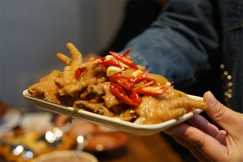 泡鸡脚是红河人的最爱,木姜子、柠檬、百香果、泡椒,味道层出不穷,还有泡猪皮,各有各的美味,鸡脚爽脆,猪皮软糯,每一种都有忠实的拥护者。