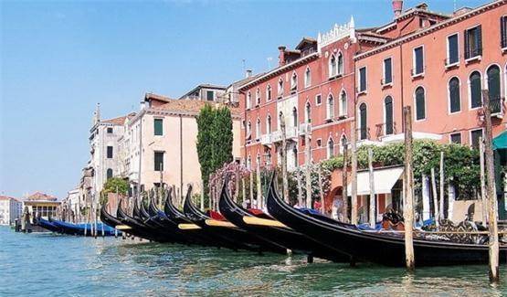 威尼斯这条主干道的街道两旁,分布着200多栋宫殿豪宅和七座教堂,多半建于14至16世纪,有拜占庭风格、哥特风格、巴洛克风格、威尼斯式等等,所有的建筑地基都淹没在水中,看起来就像水中升起的一座艺术长廊。平日里大运河真的像一条熙熙攘攘的大街一样,各式船只往来穿梭其上,最别致的当然还是贡多拉。