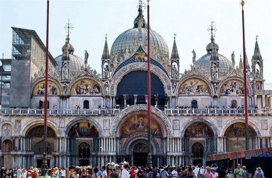 圣马可广场是威尼斯的政治、宗教和节庆中心,也是城市的标志性建筑,广场边上一圈精美的文艺复兴风格建筑,圣马可大教堂、造币厂、总督宫位于广场的东侧,西侧是钟楼及新、旧议会大楼,广场只高于警戒水位30厘米,每年至少要遭受水灾百次以上。