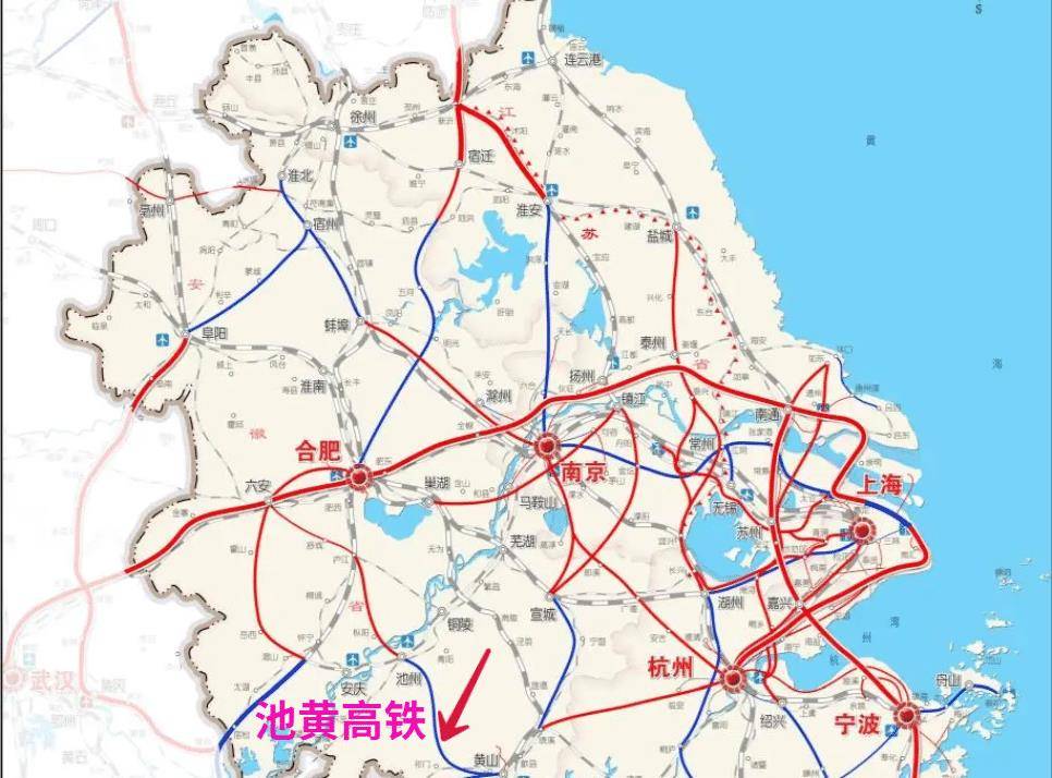 安徽池州至黄山高速铁路,简称池黄高铁,它是武汉至杭州高速铁路通道的重要组成部分,线路起自池州站,至黟县东站与在建昌景黄高铁共站并线至黄山北站,新建正线长约125公里,设计时速350公里,全线隧道34座,隧道占比60.8%。全线设池州、九华山、黄山西、黟县东、黄山北等5座车站,估算总投资183.7亿元,建设总工期48个月。