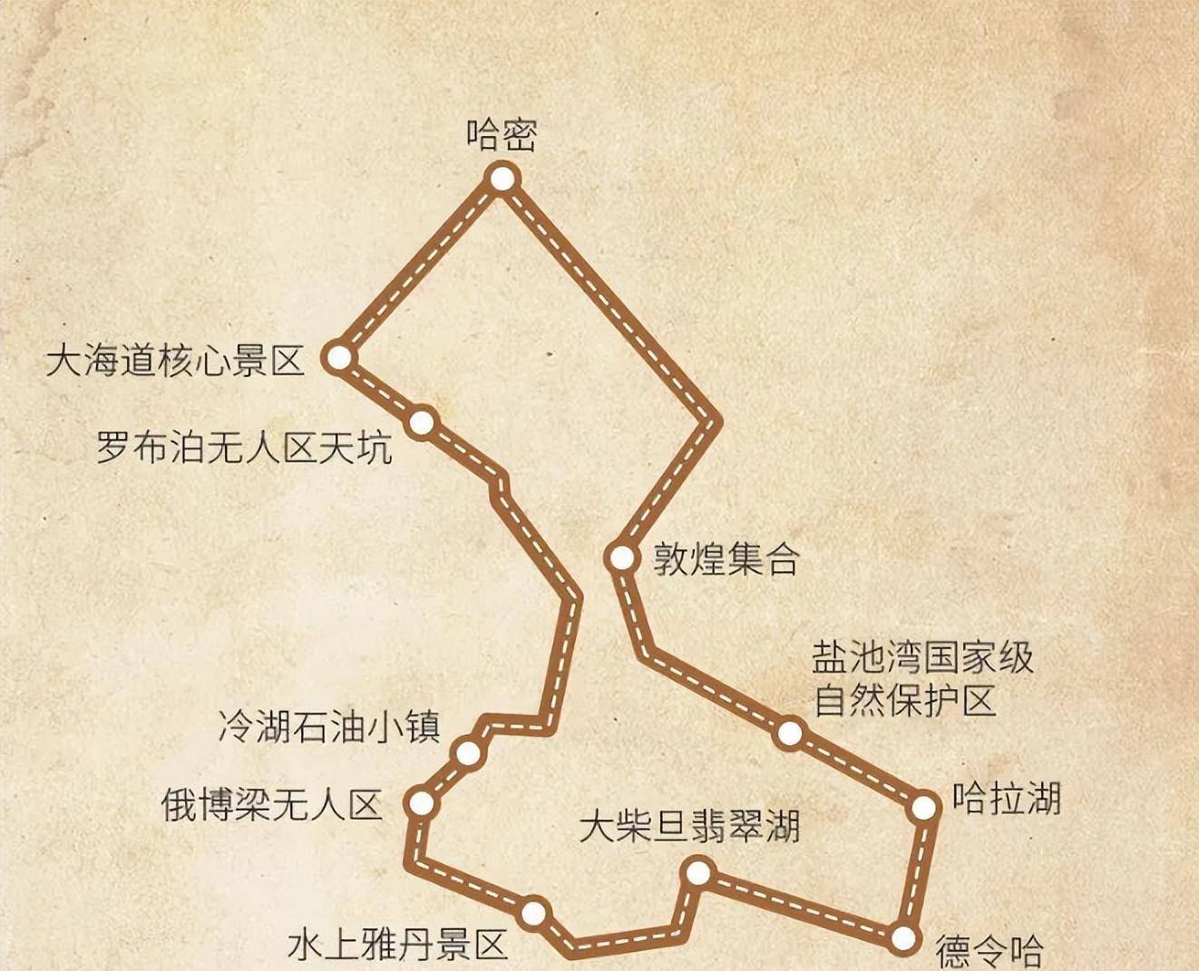 如今,这是一条鲜为人知的穿越无人区之路。汇集了古城堡 烽燧、驿站、史前人类居住遗址、化石山 海市蜃楼、沙漠野骆驼群、以及众多罕见的雅丹地理地貌。从吐鲁番出发、穿越大海道到敦煌,一路上尽是不同的民族风情和美丽风景。