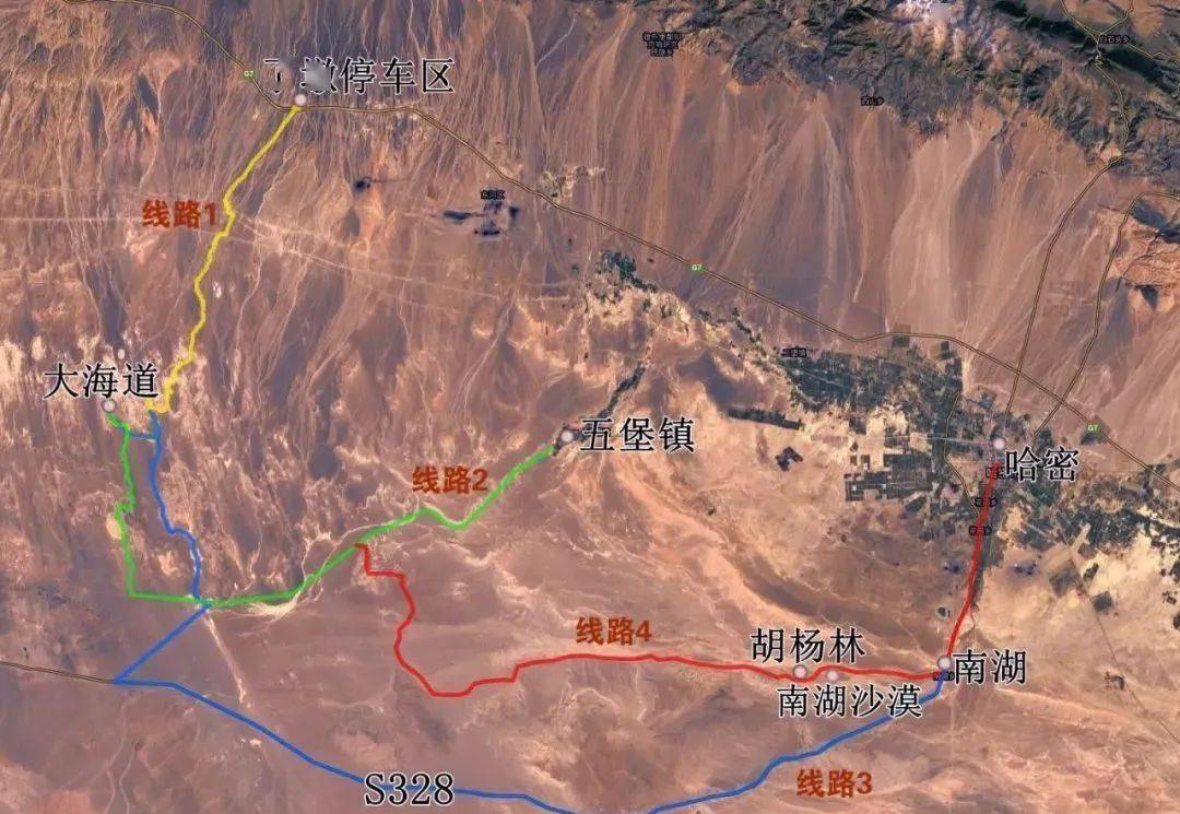 想要穿越大海道,最便捷的方式便是经了墩线路①,北进南出 和经五堡镇魔鬼城线路②或S328线路③, 南进北出