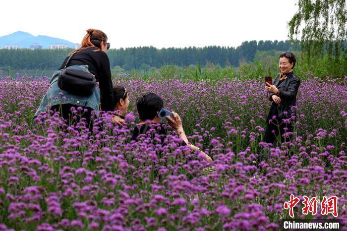游客在襄阳月亮湾湿地公园拍照留念。 杨东 摄
