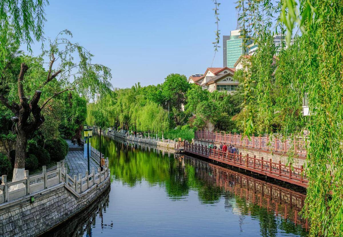 环城公园是济南最美丽的公园之一,护城河是国内唯一全部由泉水汇集而成的河流。河边散落着众多泉眼,河岸杨柳依依,环绕老城,风光旖旎。黑虎泉是护城河的绝佳C位,泉水从黑虎泉三个兽首口中喷涌而出,水花飞溅,直泻入池中,声如虎啸,动人心魄,给环城公园增加了磅礴气势。