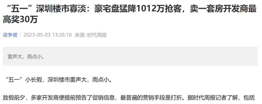 深圳的豪宅,原本想在这个五一通过降价打折的方式,推动一波成交,但换来的却是远不及预期的到访量和成交量。