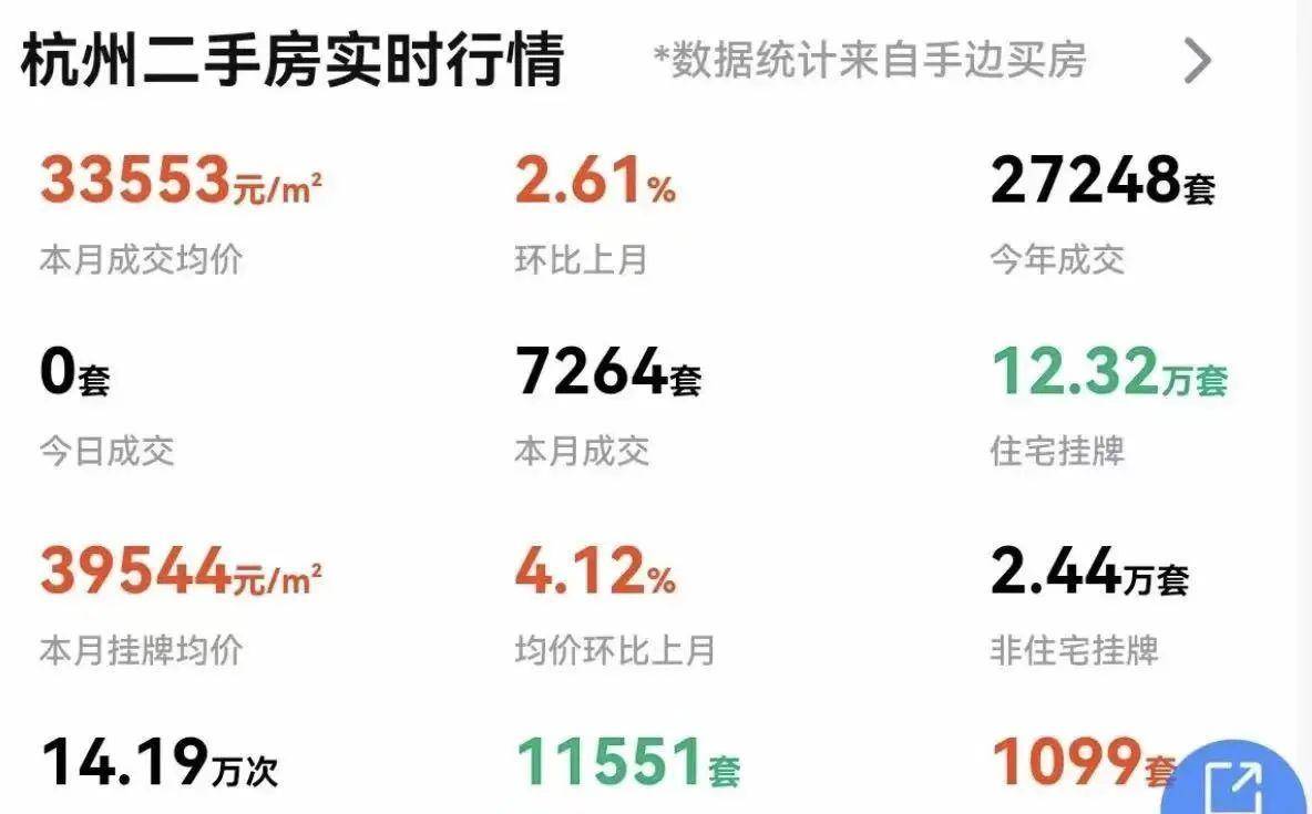 杭州4月份二手房成交量7264套,相比于3月份的10213套下跌了28.8%。