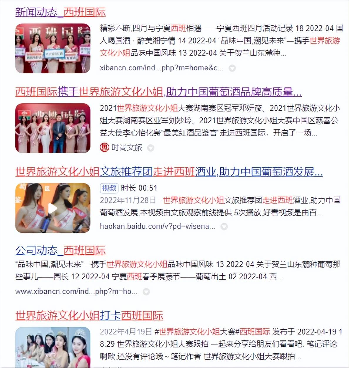 西班国际葡萄酒作为中国中部最大的葡萄酒贸易品牌运营商,与世界旅游文化小姐品牌产生了多次赞助合作。