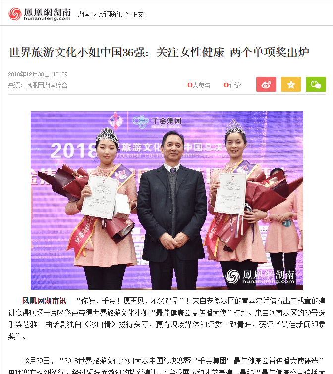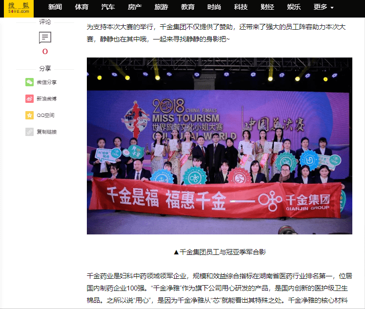 上市公司-千金药业集团“千金”作为中国驰名商标,亦是全球女性健康领域的标杆企业,中药衍生行业的品牌企业。2018年与世界旅游文化小姐大赛建立合作,世界旅游文化小姐大赛中国赛区36强佳丽走进中国“女性健康领域标杆企业”株洲千金药业集团,了解千金旗下产品,参观了企业展厅和生产车间。
