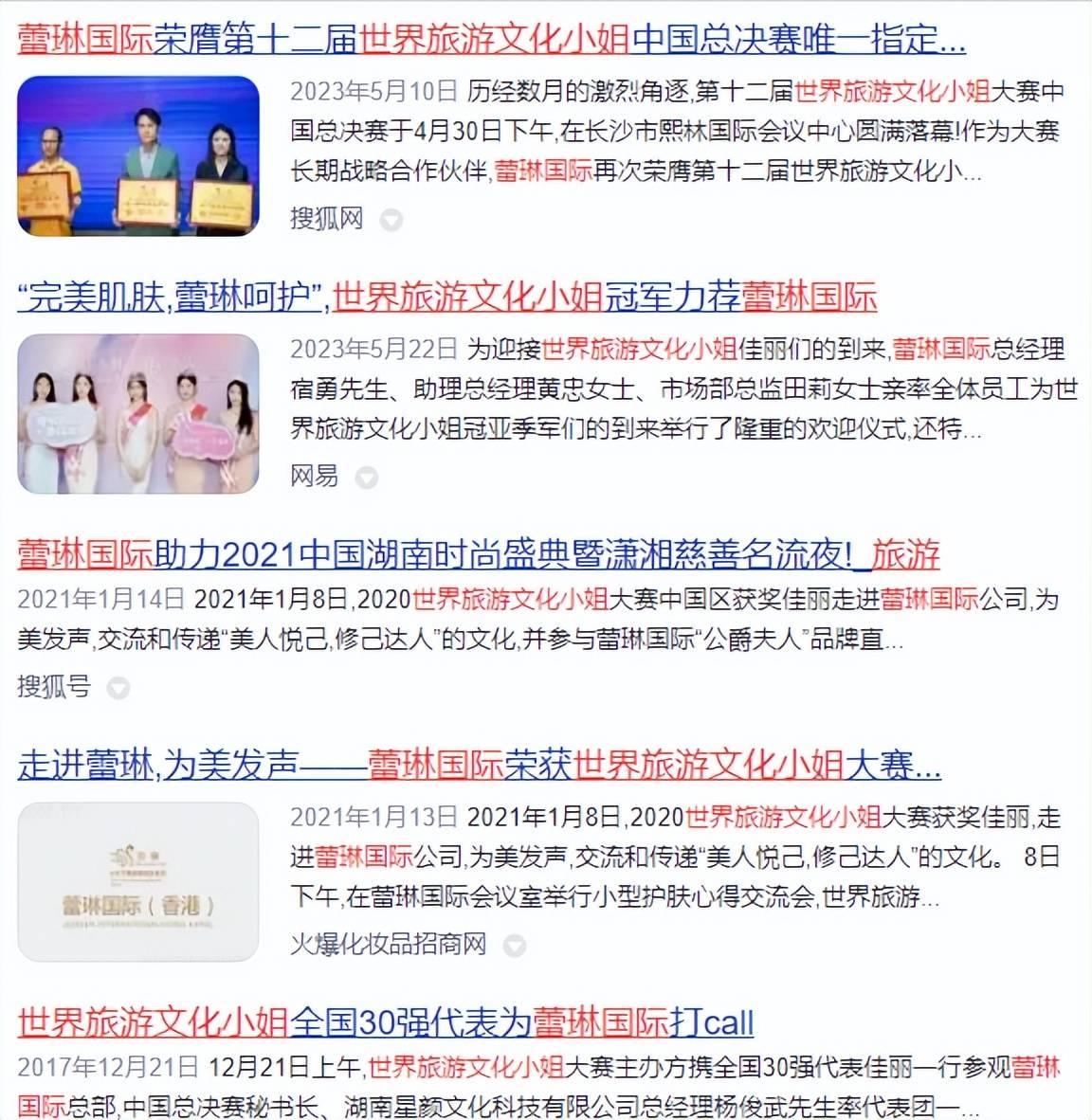 蕾琳国际作为中国民族护肤品牌,致力于中国女性美丽事业,为国际品牌护肤品代工企业,在中国近2000多家加盟合作美容院。自2013年牵手世界旅游文化小姐大赛以来,连续多年参与赛事及品牌推广合作。