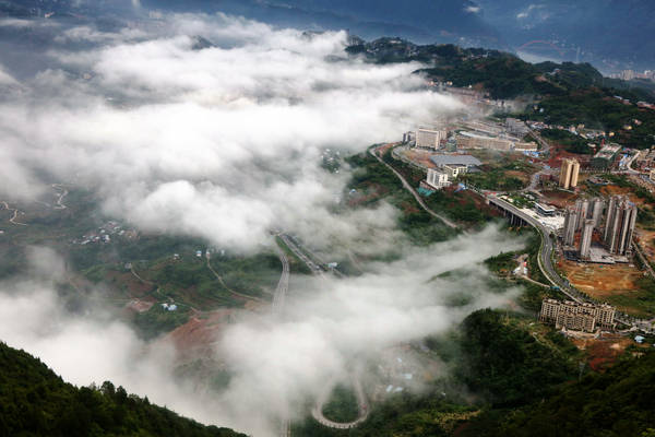 云雾缭绕中的巫山公路网。(唐金生 摄)