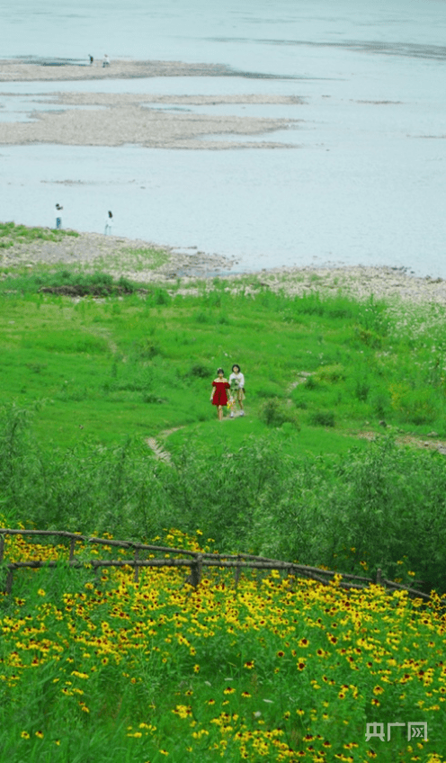 初夏时节,天朗气清。重庆市渝中区长江段滨江路,珊瑚公园、黄沙溪江畔等地花香四溢、草木葱茏,江水与花草相映成趣,如诗如画,成为众多市民放松身心、释放心灵的理想去处。