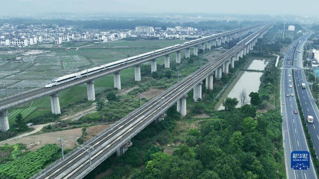 6月4日,从安徽省黄山市开往浙江省杭州市的列车从黄山北站驶出。
