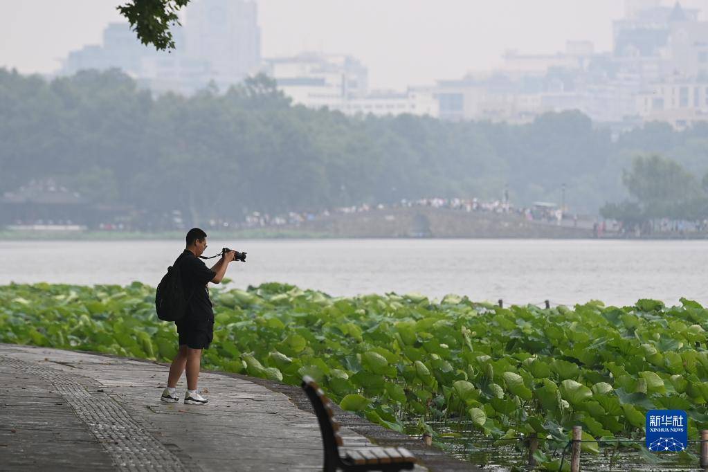 6月5日,游客在杭州西湖景区北山街游览。