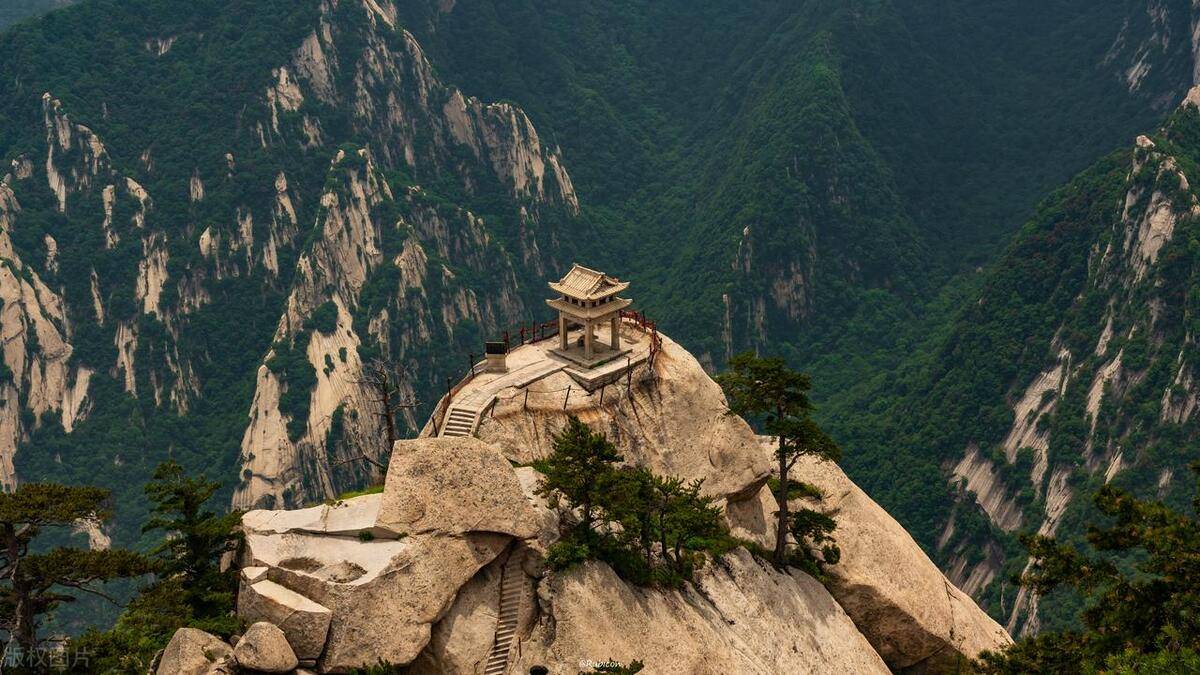 华山的主峰海拔2,154米,名为南峰。整个山脉由五座主要的山峰组成,分别是东峰、西峰、南峰、北峰和中峰。这些山峰之间相互连绵,形成了壮观的景观。华山的山峰陡峭,悬崖峭壁,岩石嶙峋,给人以挑战和惊险的感觉。尤其是华山的著名景点"金锁关",是一段陡峭的山路,有数百级石阶,攀登起来非常刺激。
