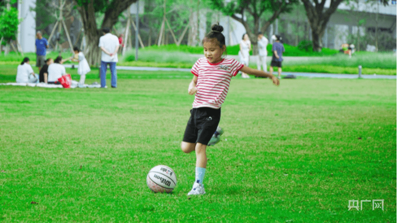 小朋友把草地当成足球场(央广网发 蔡逸宸摄)
