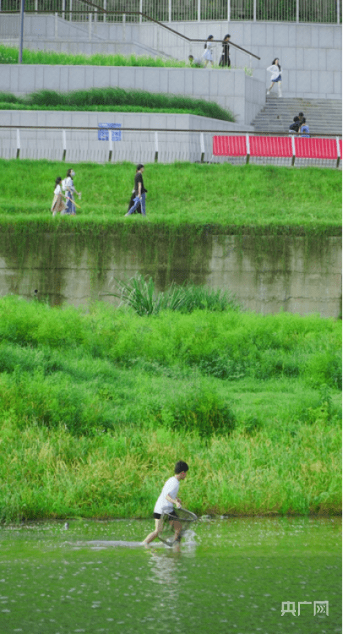 水中的小朋友和步道的游人(央广网发 蔡逸宸摄)