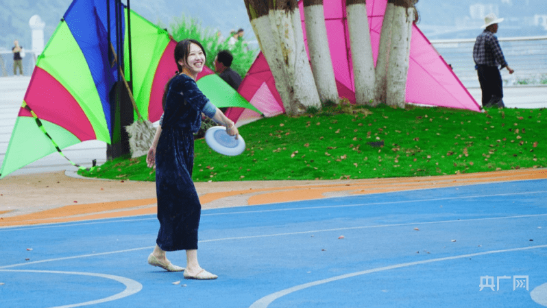 玩飞盘的女孩(央广网发 蔡逸宸摄)