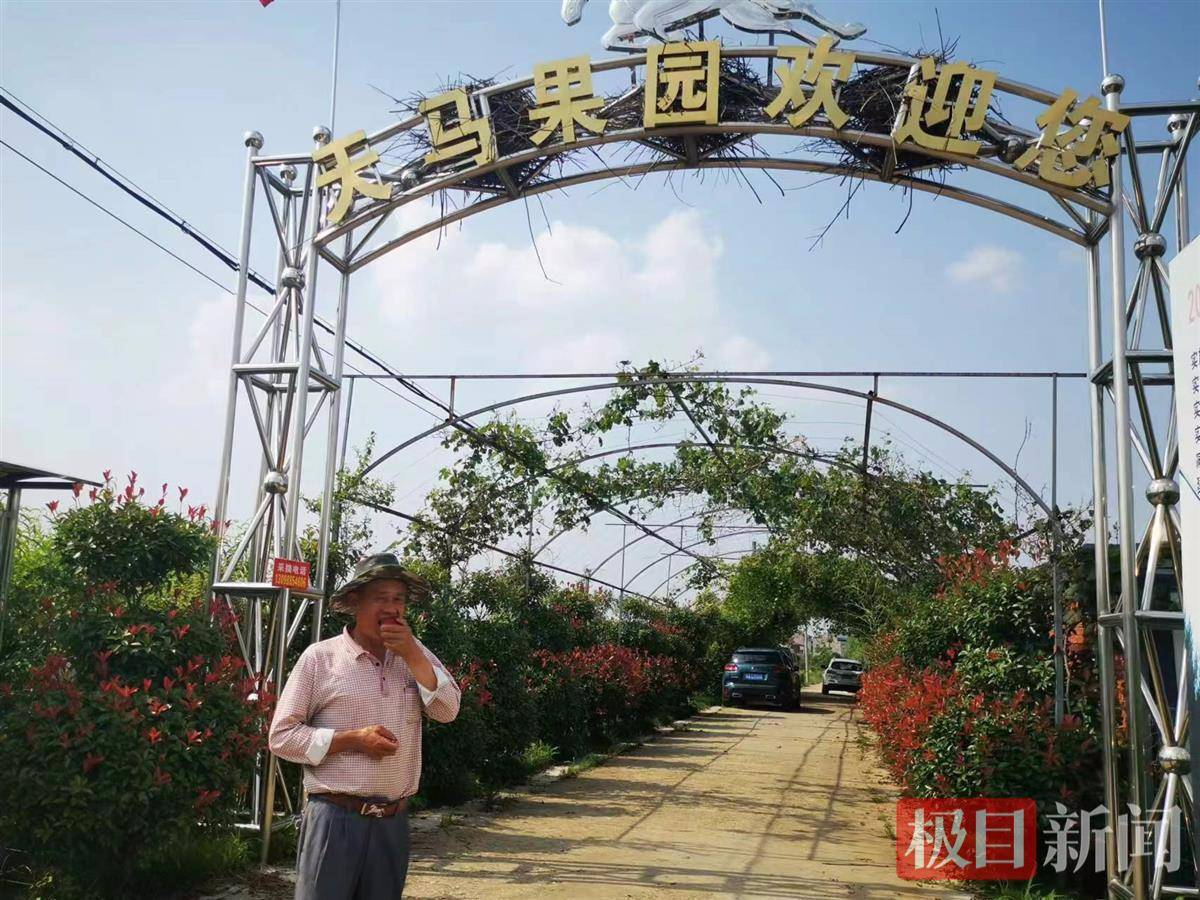 一条一车宽的水泥路,连接着宽敞平坦的044县道,在农田和民居中蜿蜒,每到路口和转弯处,都有前往天马果园的指示牌。道路两旁的水稻田,已经栽上了秧苗,在微风吹拂下显得摇曳多姿。