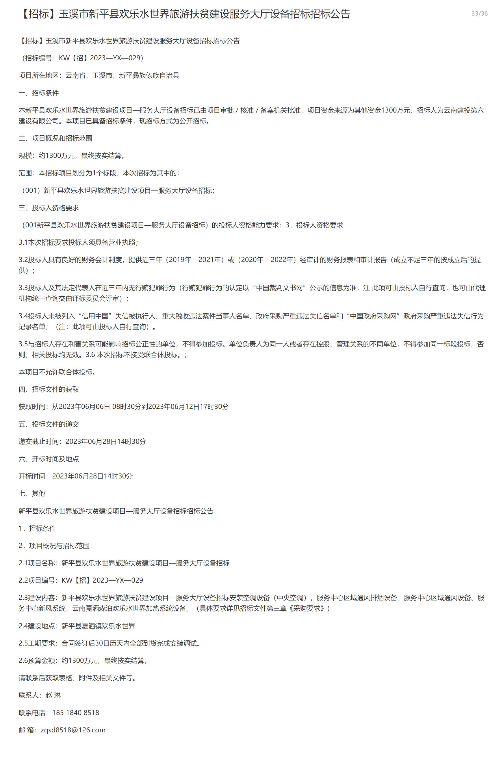 【招标】玉溪市新平县欢乐水世界旅游扶贫建设服务大厅设备招标招标公告