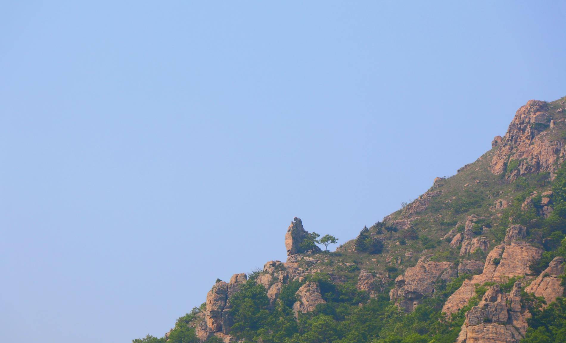 而在东斗崮之东,越过一座山峰,连绵的山脊上还有另一块奇石。从环岱庵村眺望此石,就仿佛一座面向东北而立的人像。当地人因此称之为“人石”。此石的规模对比东斗崮自然是小巫见大巫,但据说也有数人多高,亦不失为一处景观。