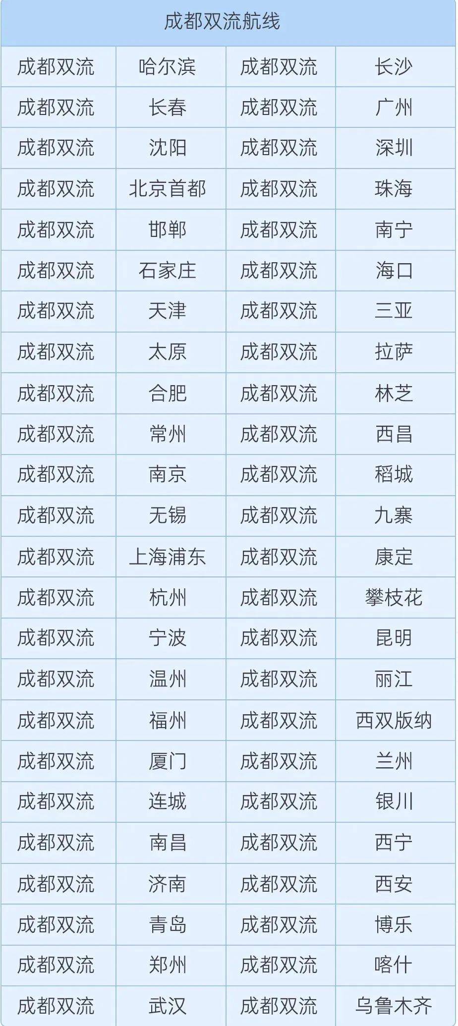 戳下图查看川航双流航线