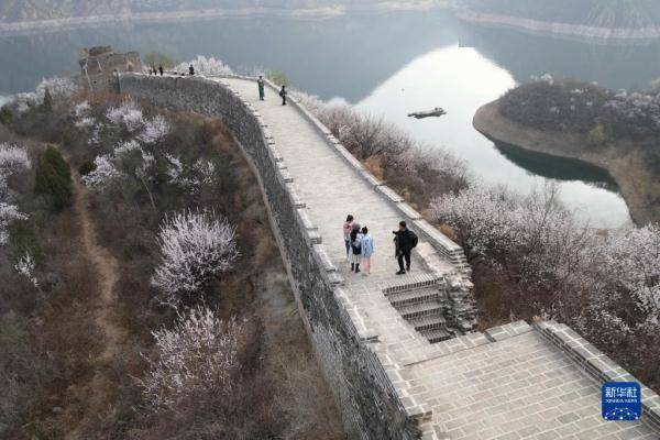 春暖花开时节,位于河北省宽城满族自治县的喜峰口水下长城两侧山花开放,绽放的花朵与古长城相映成景,吸引游人前往游览。