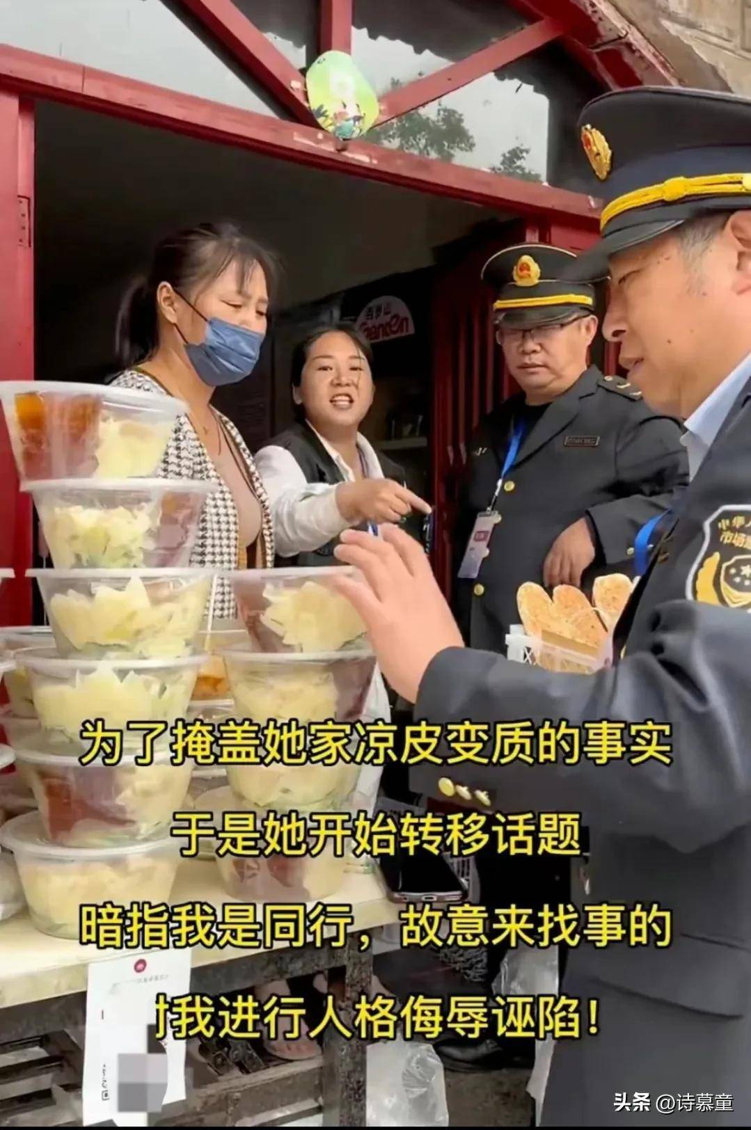行政处的两名工作人员带着游客去凉皮店查看是否属实。结果,管理人员闻到味道有点变了,便与店主合作,让店主退钱。