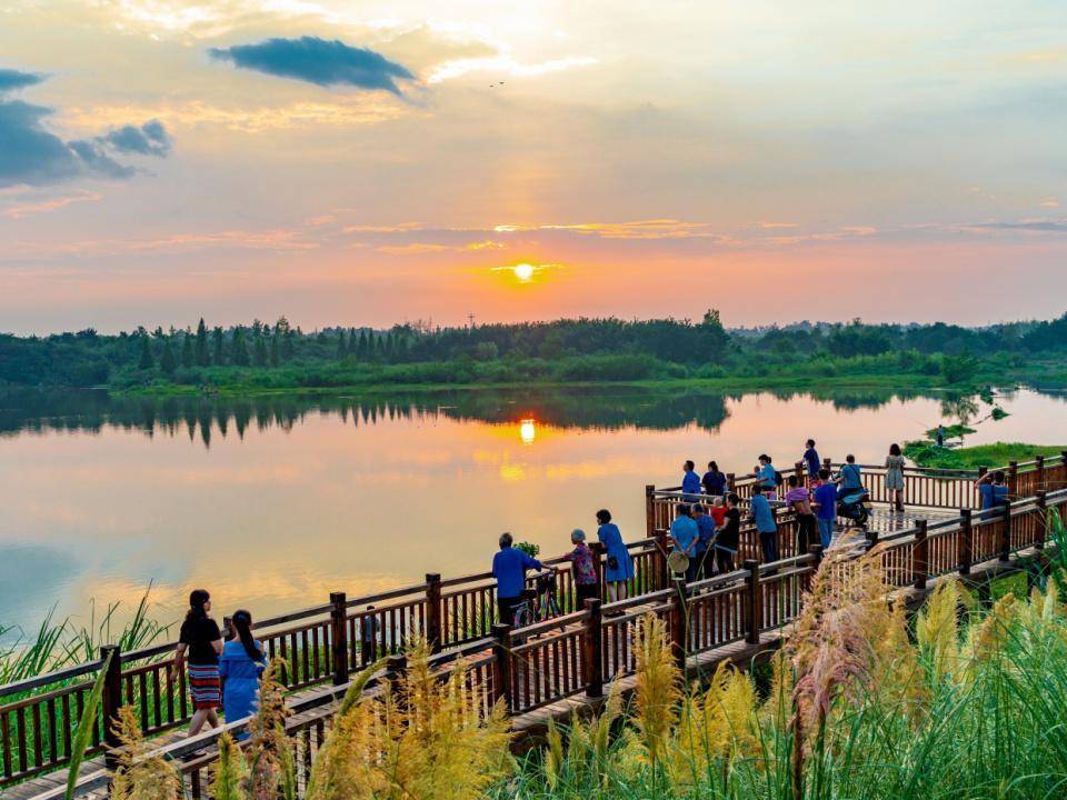 这里是成都市温江区陆家滩。因解放前有渡口,又以卢姓居多,故名卢家滩。陆家滩面积1800多亩,其中湖心水面约600多亩,陆地面积约1200多亩,与金马河相隔一道坚固的堤。这是温江唯一自然形成的开阔水体。紧邻金马江、岷江。沿湖还有一条木栈道。亲水平台可玩可玩,年轻的陆家滩与古老的金马河交相辉映,动静结合,诠释着诗意美与野性美的内涵。