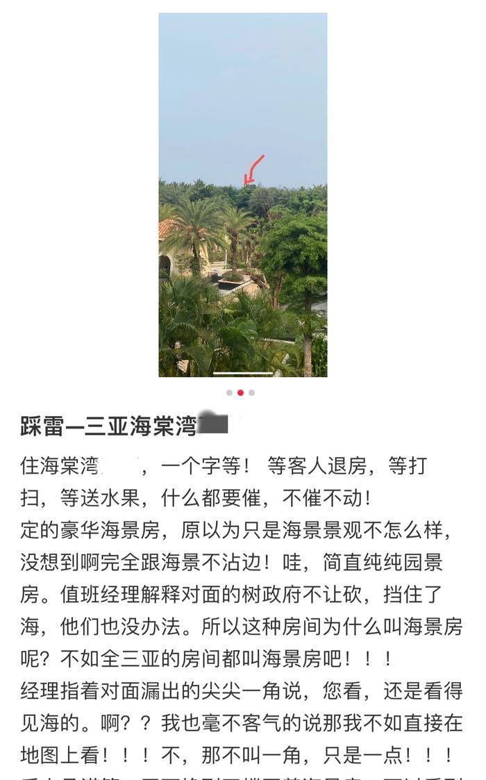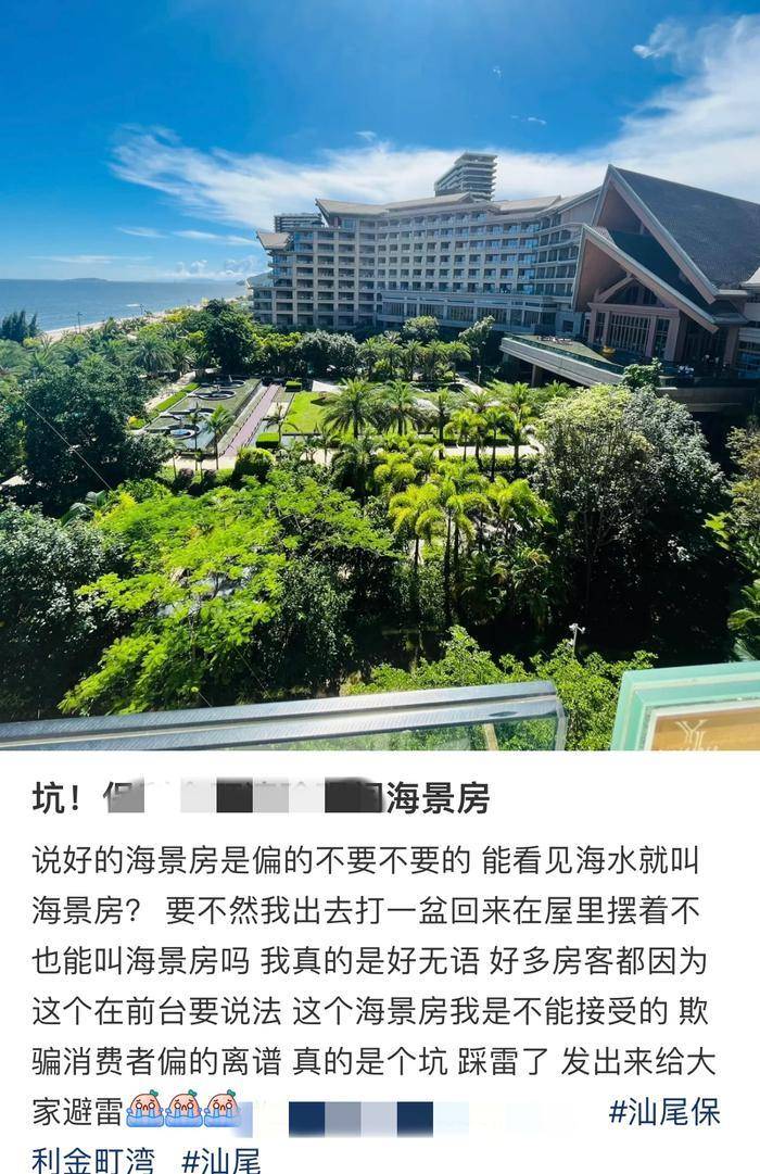 根据各大旅游平台的数据,今年的五一游异常火爆。“海景房”是预订的首选。标榜是“海景房”,但实际入住的时候发现所谓的“海景房”只是窗边的一角……社交媒体上,很多网友发帖分享自己的体验订海景房“踩雷”。值得注意的是,这些雷霆万钧的帖子中不乏知名豪华酒店,就连名人都踩过坑洼。