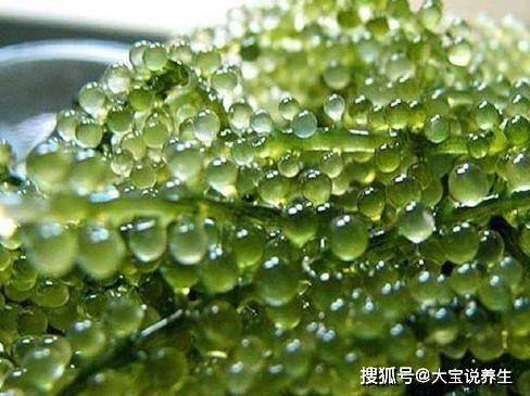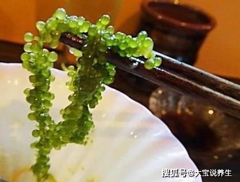 不过要提醒大家的是,这种“葡萄”不吃真的很可惜,因为它不仅仅是一道装饰小菜,还是一种非常昂贵、非常有营养的“海葡萄”。顾名思义,这种“海葡萄”长在海里,其实和真正的葡萄没有任何关系。它实际上是一种原产于日本冲绳的可食用海藻。它的学名是“长茎葡萄”。蕨类藻类,又因其具有极高的营养价值,冲绳人声称长期食用可健康长寿,因此在当地也被称为“长寿藻类”。