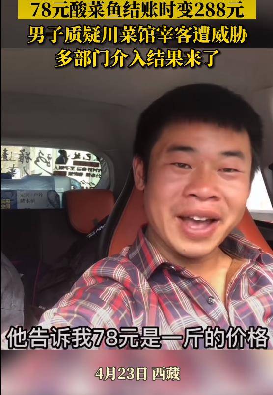 消息一出,众说纷纭有网友认为,西藏地形地貌复杂,西藏吃鱼成本高,所以老板的酸菜鱼要价288元也就不足为奇了。另外,一盘土豆泥和汤要28元,酸菜鱼也不大可能是78元。