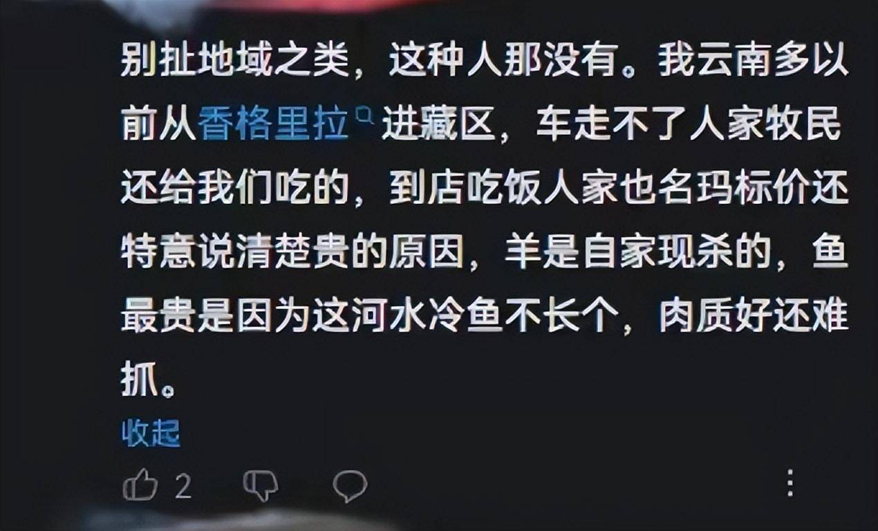 这个观点大家都很认同,甚至有网友表示,川西乃至西藏的餐馆老板吃鱼都要收费。