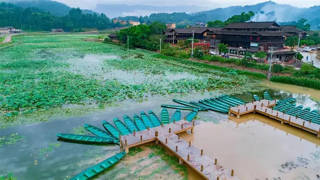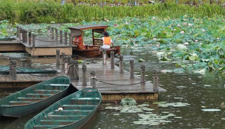 目前的大田湿地景区由古村落游憩区、荷花文化展示区、荷花湖观赏区、自行车骑行区、步道游乐区、木棕河漂流区、水上游乐区组成。一个非常完整的乡村旅游中心,还有文化表演。美如莲花的少女,立于水中2023,真美!