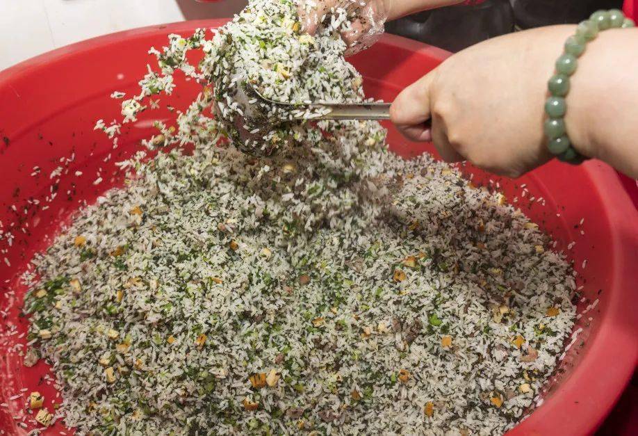 将青蒿、米饭和其他配料混合均匀