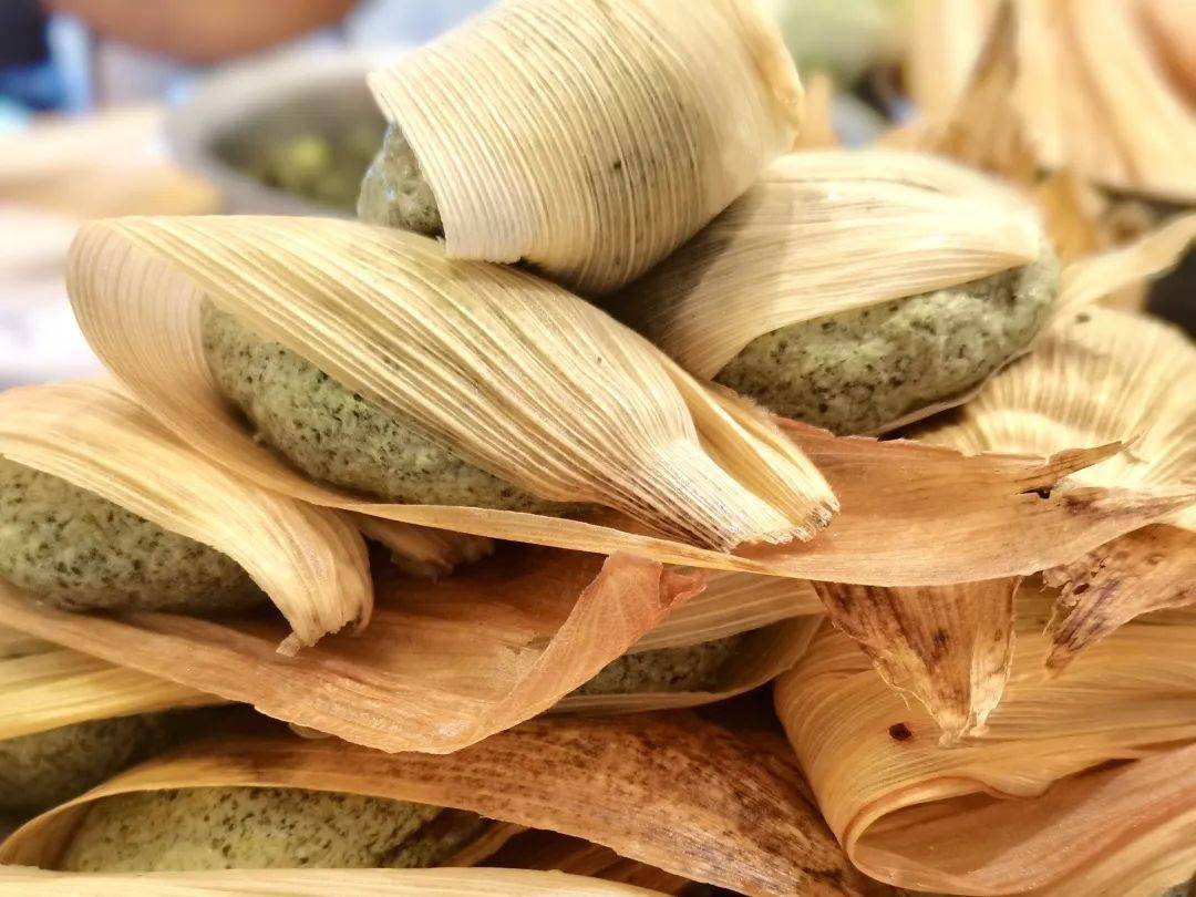下图:玉米壳包好的艾蒿馍馍