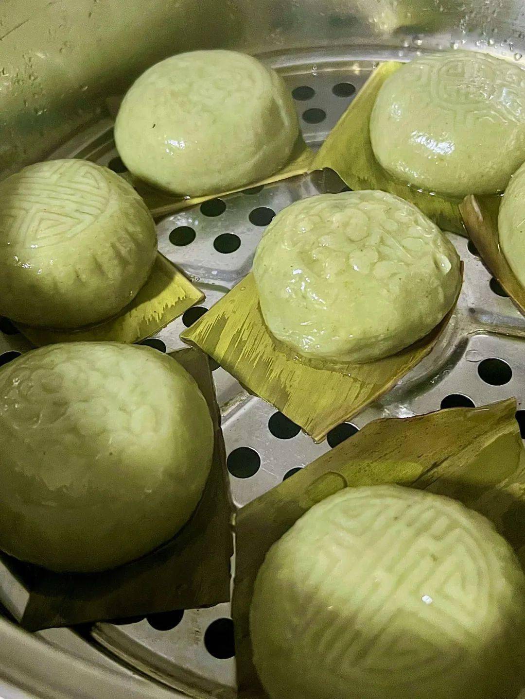 将青汁加入糯米粉、粘米粉,加入适量的水揉成面团。面团制成以后,将馅料包进去封口。进蒸锅前,外表刷一层香油,不单能防止面团干裂,还油亮好看。