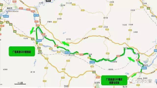 或者提前在梧州选择行驶广佛肇高速(S8,也称广梧高速)。