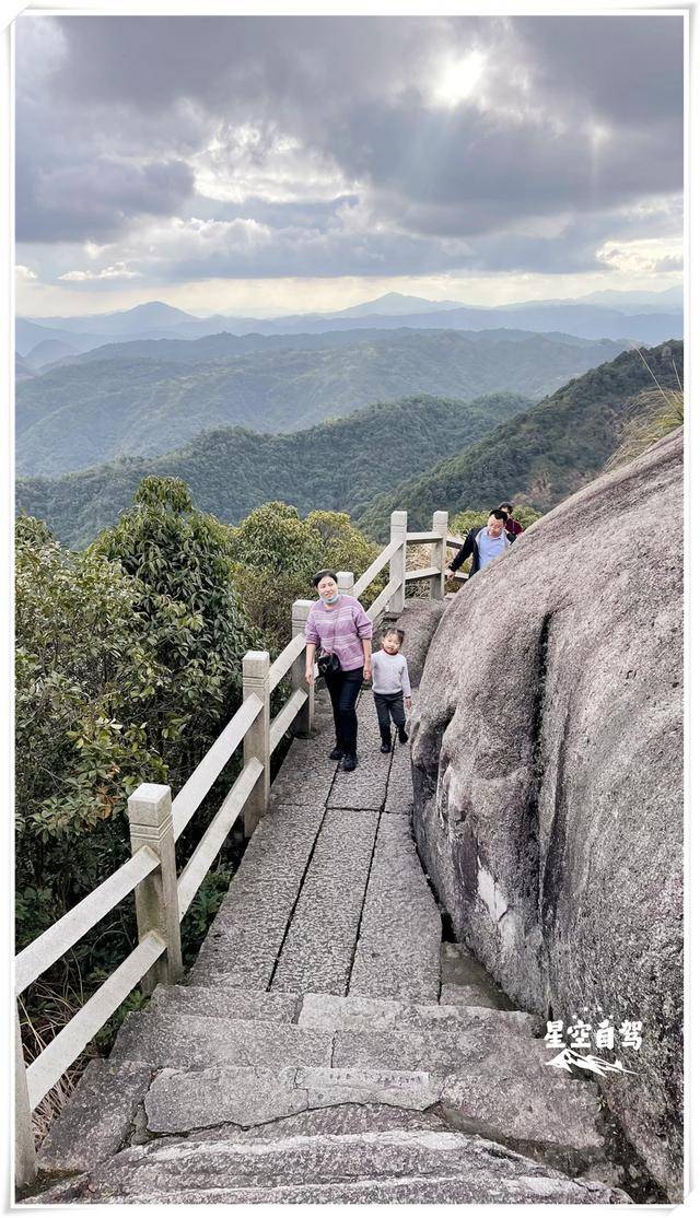 峰顶也就是一号观景台,是太姥山观看日出的最佳位置,海拔917.3米,跟云贵川比是没啥,昆明轿子雪山海拔也有4300米了,但这里可是海边,地面海拔约等于0的地方,900多海拔已经很厉害了。有看到那耶稣光没?转瞬即逝,等我发现了拿出相机再拍,肉眼可见的速度就没了;