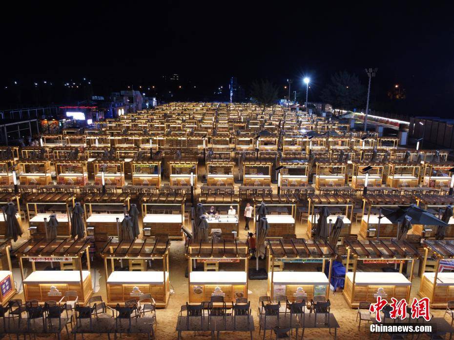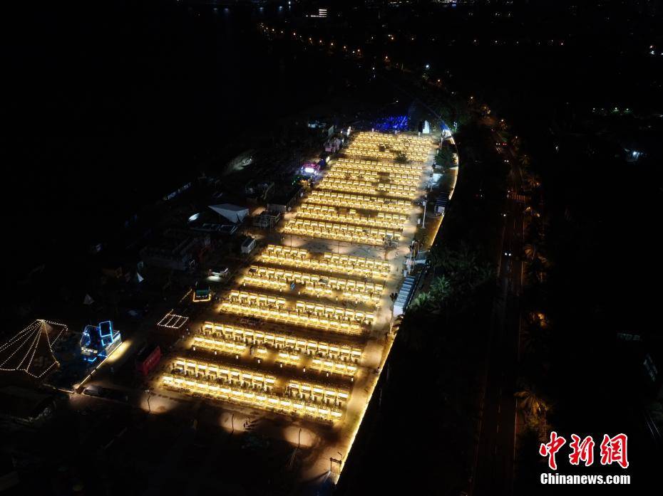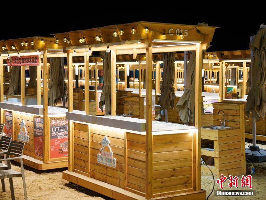 6月5日晚,海南海口“白沙门沙滩市集”国际欢乐海滩项目正进行收尾工作,预计6月10日开业。据了解,该项目总投资3000万元,占地面积约6万平方米,计划引入820家国内外商户。项目建成后预计年接待游客600万人次,带动约3000个就业岗位。该项目将汇集海南和东南亚的美食、人文、民俗及非遗文化,打造集夜游、夜购、夜娱于一体的文创市集,助力夜经济发展。(无人机照片)