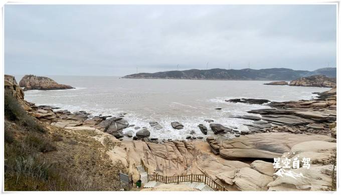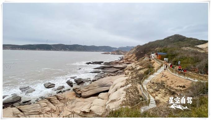 沿着海边的木栈道行走,美丽的海滩遍布各种不同形状的礁石,海水轻轻拍打着,发出轻柔的“交响乐”;