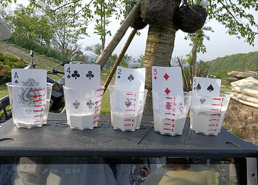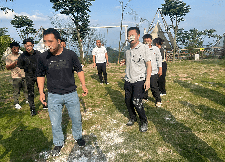 面粉接力赛每组单独进行比赛,所有参赛队员在不能用手和不借助任何外力的情况下,依次用嘴咬住扑克牌运送面粉,首先由第一名参赛队员将面粉传递到下一位选手的扑克牌上,尽量减少面粉的掉落数量;以此类推,一直传递到最后一位选手为止,最后一位选手需要将面粉倒在终点面粉容器内;如中途面粉全部掉落,将重新由第一名参赛队员开始传递。在五分钟时间内,按照送运面粉量的多少依次排名,容器内面粉越多分数就越高。最终按照送运面粉容积刻度量依次排名。