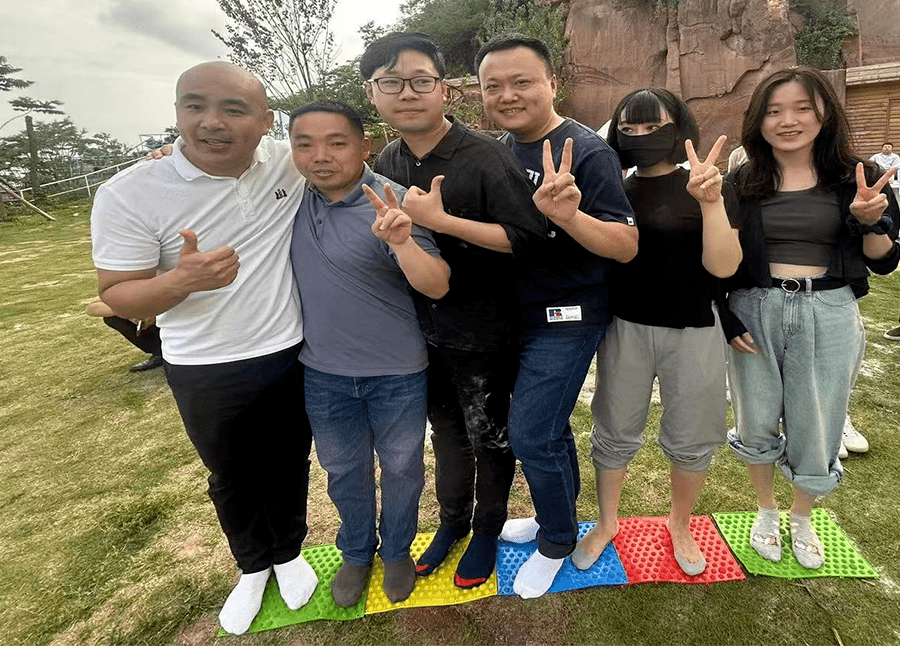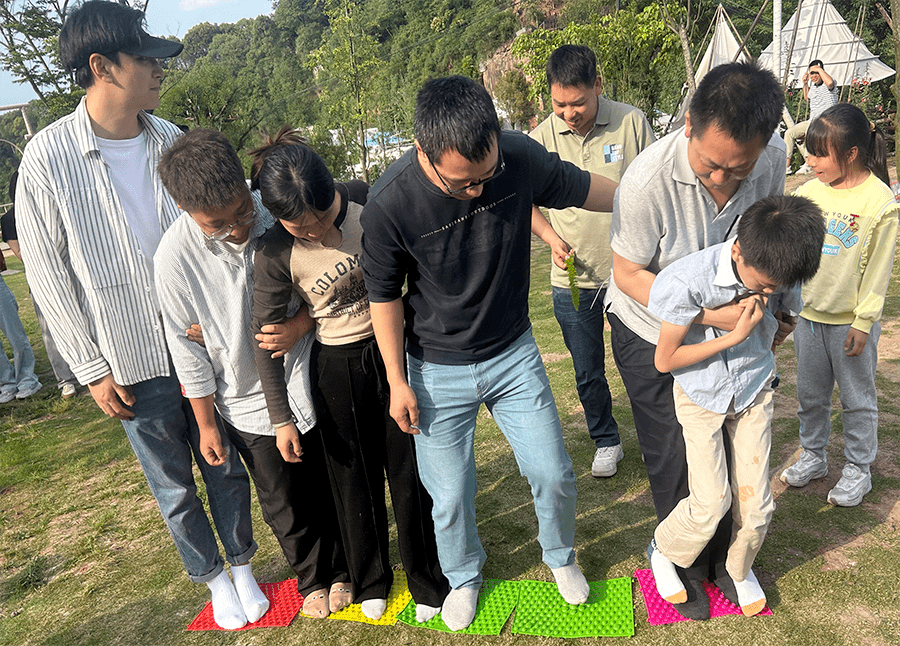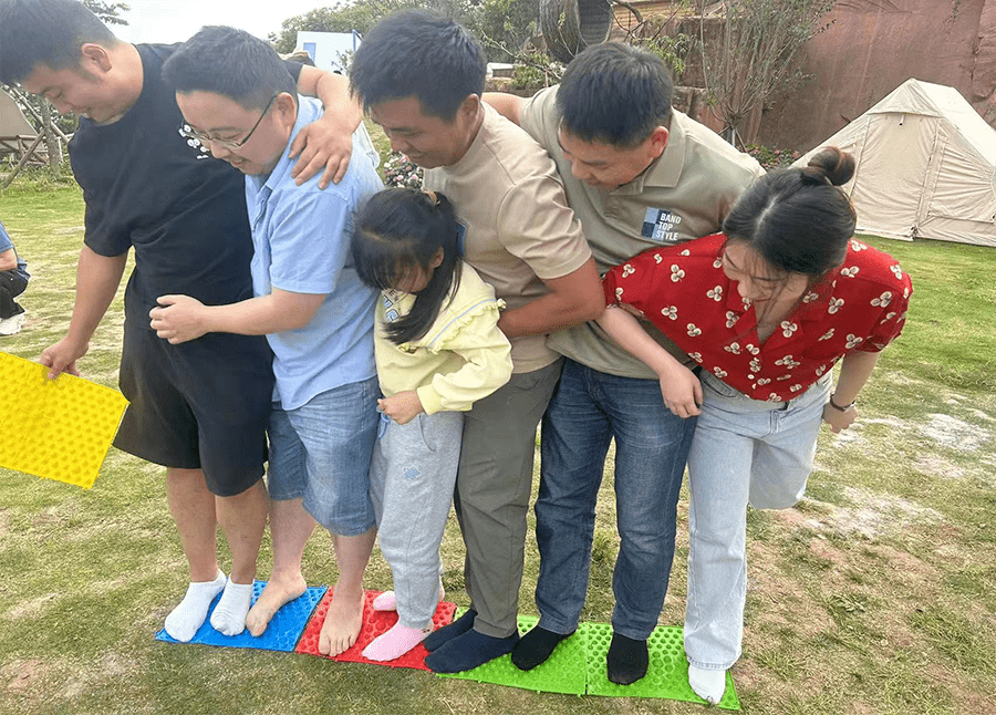 户外活动当然少不了户外小游戏。第一个团体活动,所有人员排队报数,第一排第一人开始报数( 1、2、3、4、5 循环报数),喊1的为一组……喊2的为一组,最后分五个组。
