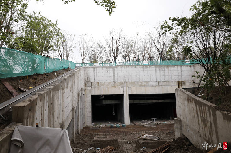 山体内部采用空腔结构,一、二层设置了1500个停车位,目前正在进行机电等装修。