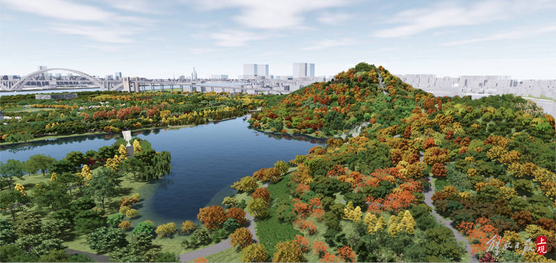 双子山建成后效果图——秋景一派层林尽染景象。