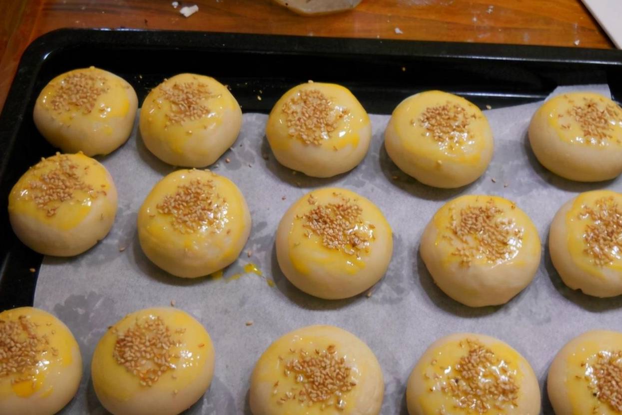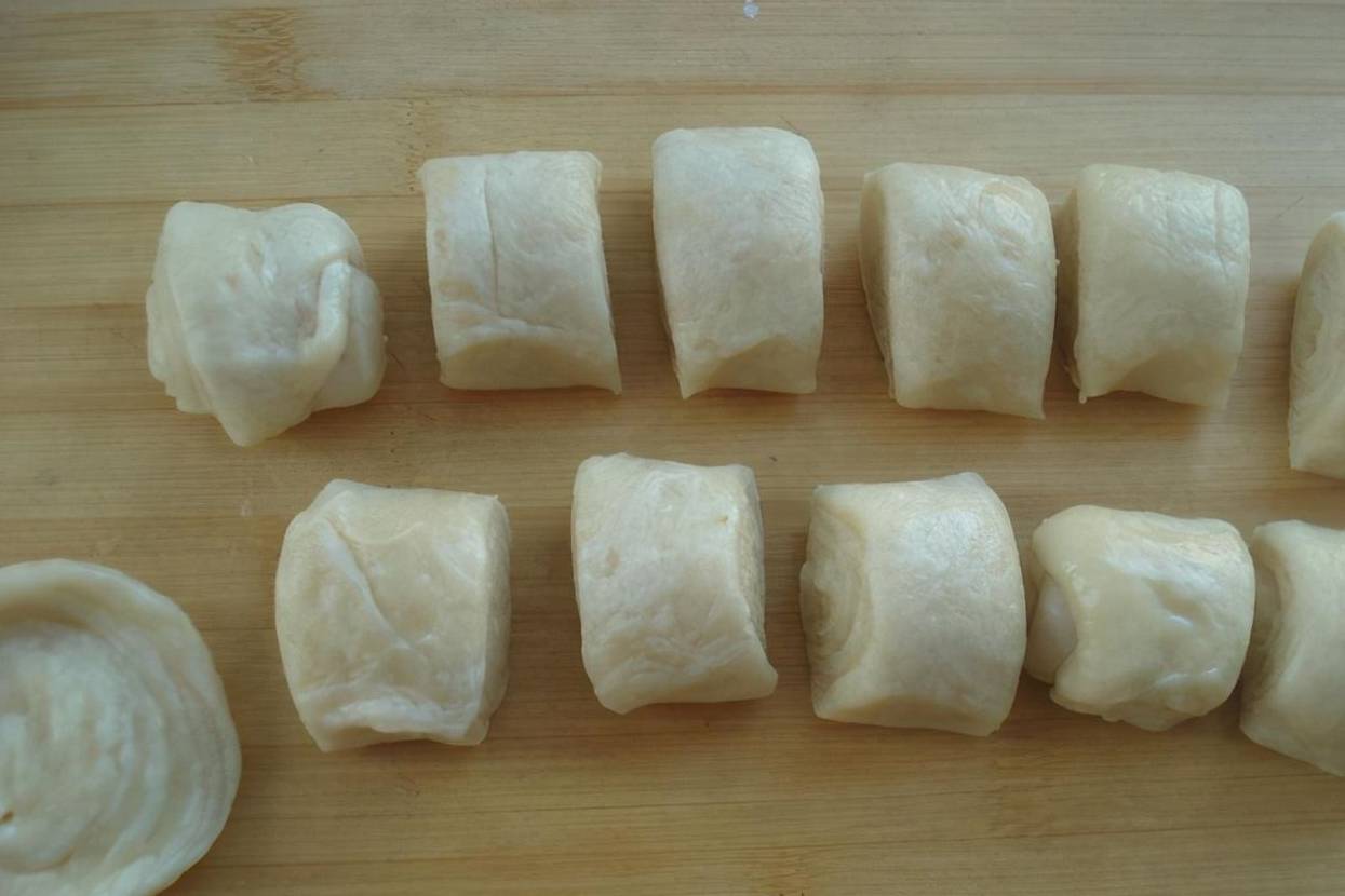 和好的面团分成小份,放在面板上揉成圆形,加入猪油揉成油酥,就跟咱做蛋黄酥的外皮差不多。另外,在做面皮的时候,可以用手戳一个洞,加上牛奶和白糖,这样做出来特别香甜。擀面杖来回擀,直到光滑为止。光看着这个饼胚子都馋得不行了,出锅一次吃3个。