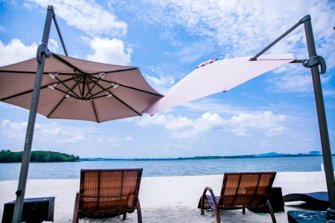 躺在沙滩椅上吹风发呆,眼前的也不再是手机电脑的电子屏幕,在清新的色彩里做个视觉spa,只管踏沙玩水,好不惬意。