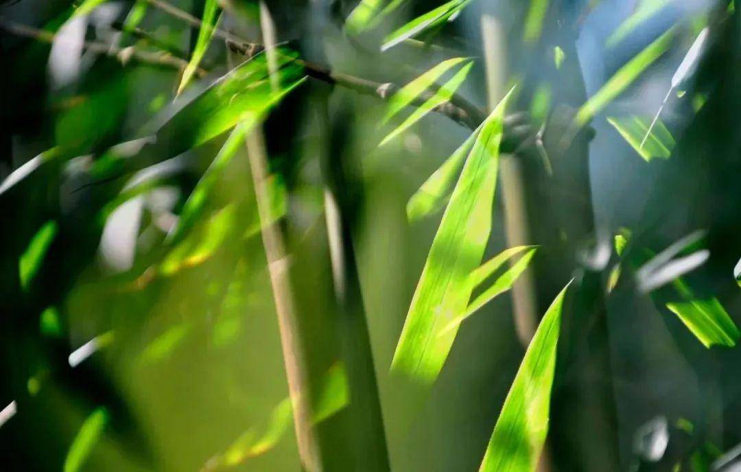 由远及近,风的脚步窸窸窣窣,翠绿的竹叶翻飞,涛声阵阵连绵不绝,枝叶间传来回声,还有隐隐的蝉声鸟语……